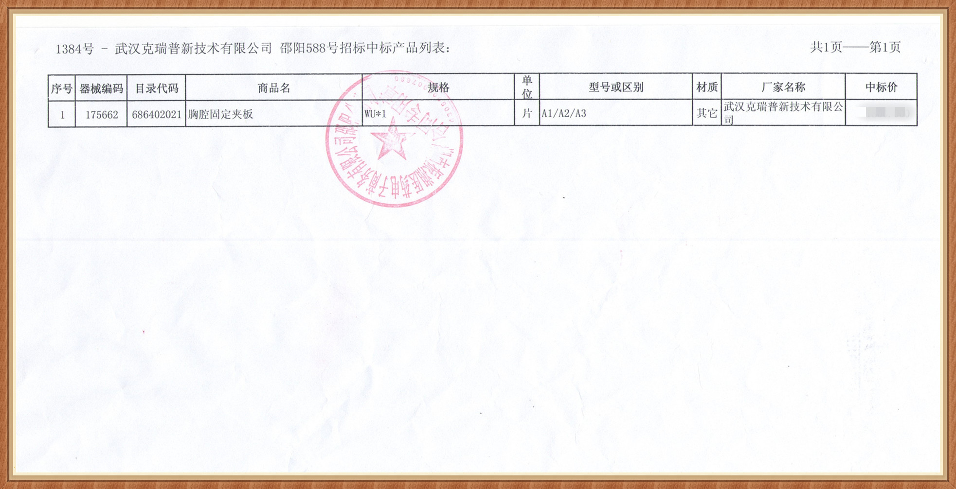 【湖南省邵陽市588號招標】我們武漢克瑞普新技術有限公司的胸前固定夾板產(chǎn)品已經(jīng)在湖南省邵陽市588號招投標中成功中標產(chǎn)品展示,我們這次中標的胸腔固定夾板產(chǎn)品型號分為A1/A2/A3三種型號,此產(chǎn)品已在多家醫(yī)院和診所采取了臨床使用,產(chǎn)品反應良好歡迎其他的醫(yī)院以及經(jīng)銷商等來采購。