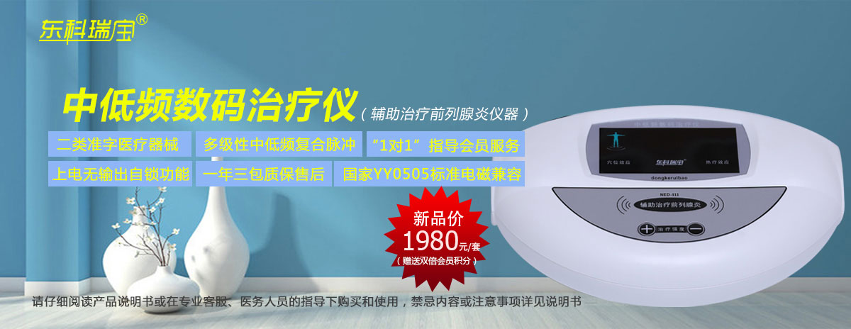 東科瑞寶牌中低頻數(shù)碼治療儀(輔助治療前列腺炎)采用多級(jí)性中低頻復(fù)合脈沖電流,根據(jù)前 列腺疾病治療的特性,由專門設(shè)計(jì)的電腦程序控制中頻脈沖電流3000Hz-至低頻脈沖電流370Hz之 間不斷變頻轉(zhuǎn)換,利用專用理療電極片等配件耗材輸出,并通過特定穴位經(jīng)絡(luò)釋放,起到輔助治療 前列腺炎等疾病的作用。 東科瑞寶品牌治療儀器使用220v交流電源,符合國(guó)家YY0505標(biāo)準(zhǔn)電磁兼容有關(guān)要求,具有耐壓4000 伏和上電無輸出自鎖的安防功能,可適用于家庭、中小醫(yī)療機(jī)構(gòu)、鄉(xiāng)鎮(zhèn)醫(yī)院、社區(qū)診所理療科室等。